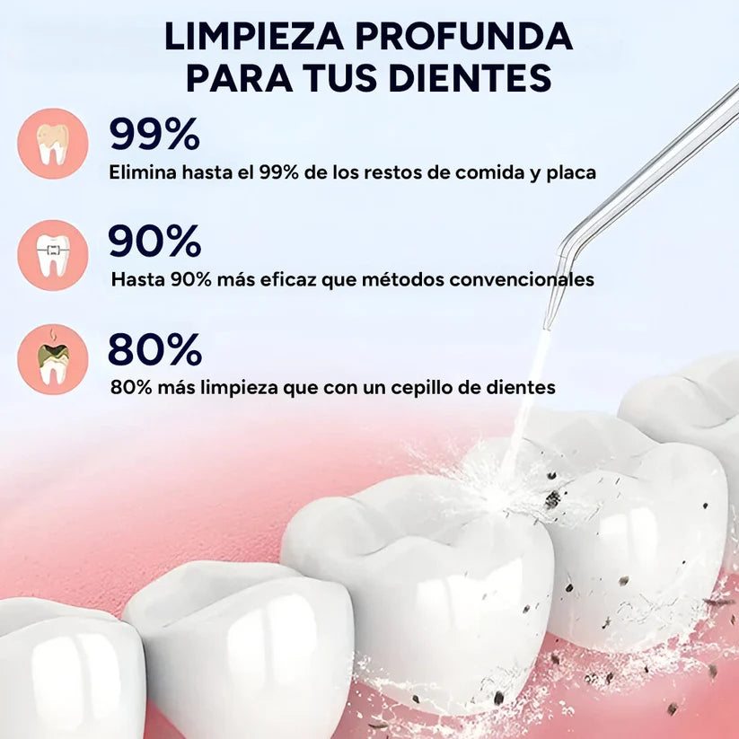 Con AquaDent™, olvidate de complicaciones: su presión pulsátil ajustable y boquillas especializadas hacen que cuidar tus dientes y encías sea rápido, seguro y eficaz. La limpieza profesional ahora cabe en tu mano, sin esfuerzo ni instrucciones complicadas.